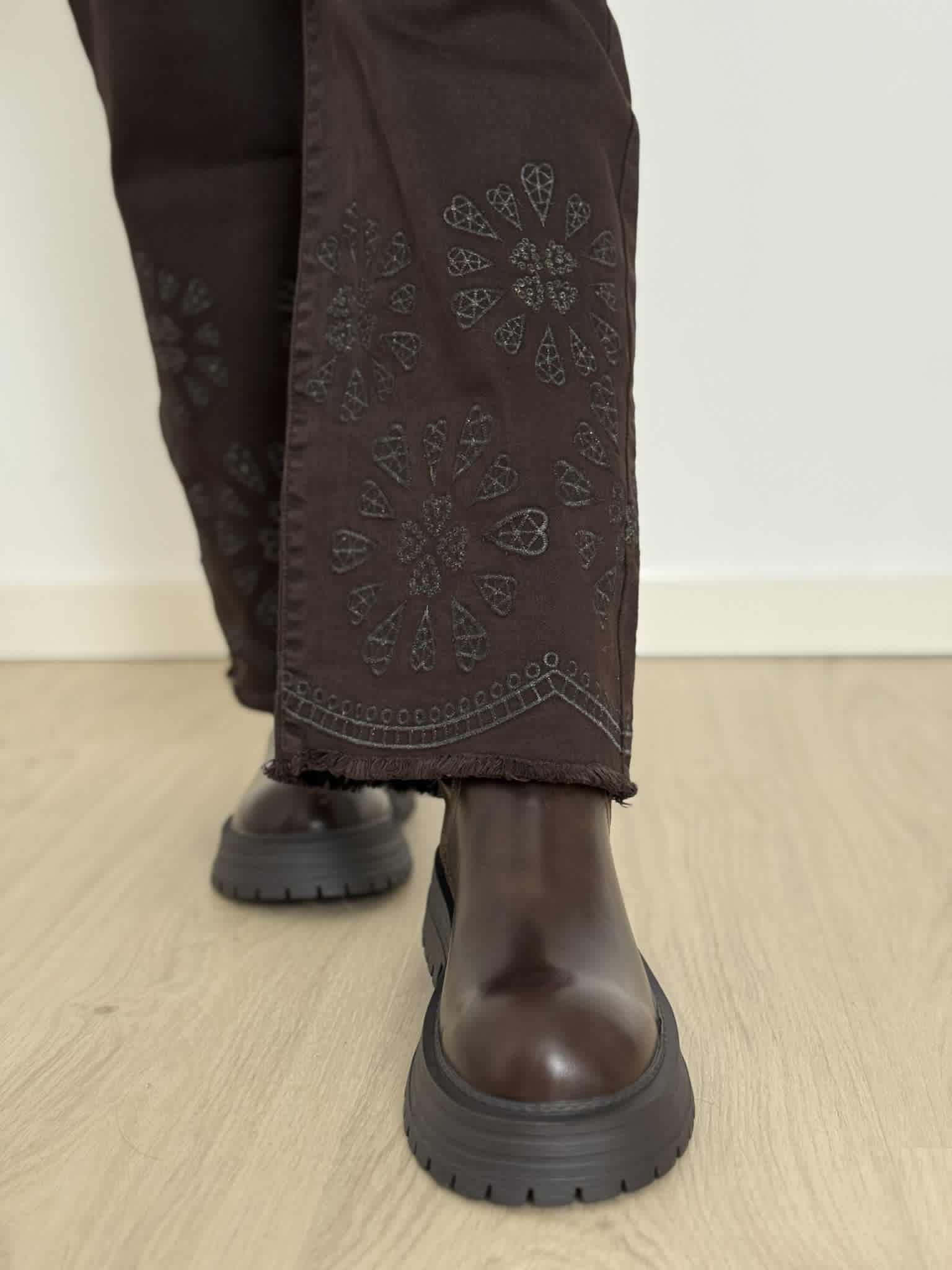 En komfortabel og tøff bukse til hverdag og fest, med rette bein og detaljer nederst på buksen.