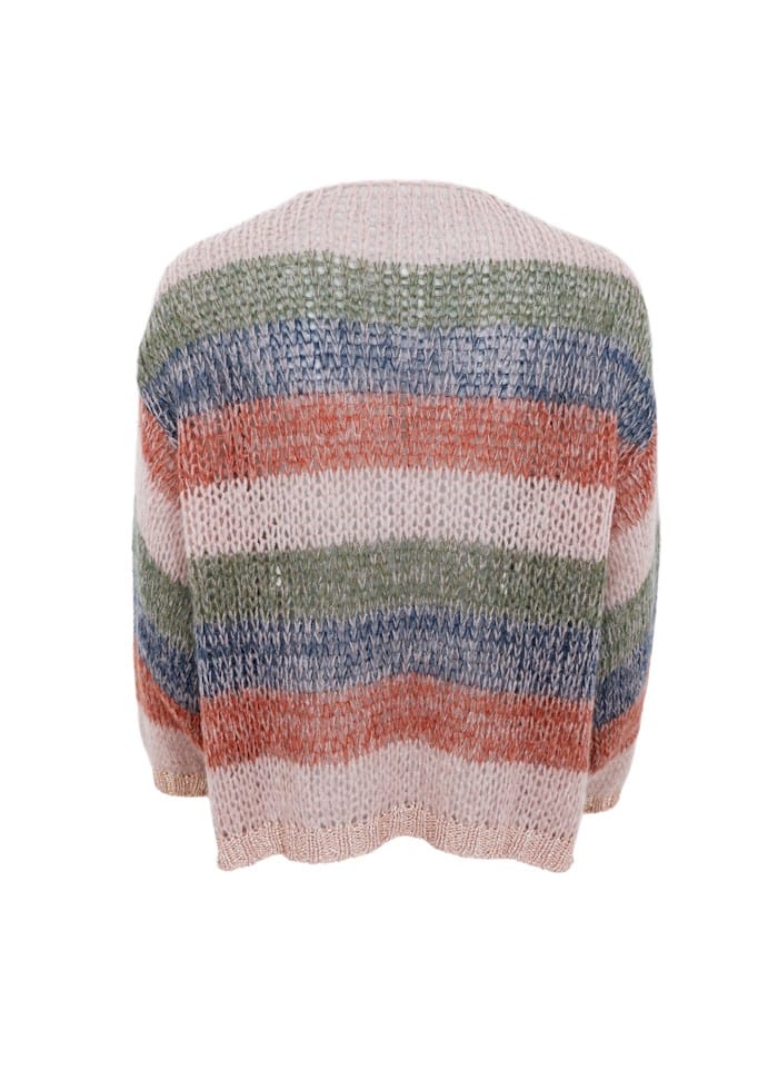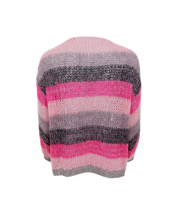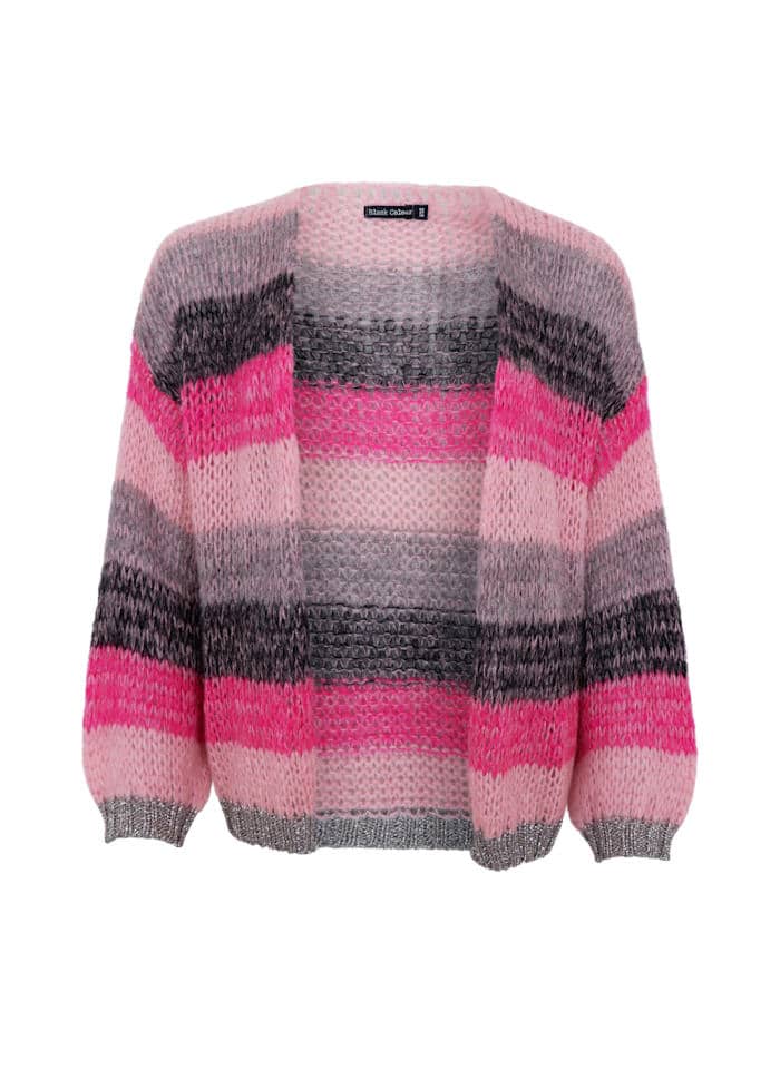 Nydelig, myk børstet strikkecardigan i fargede striper med lurex nederst på ermen.