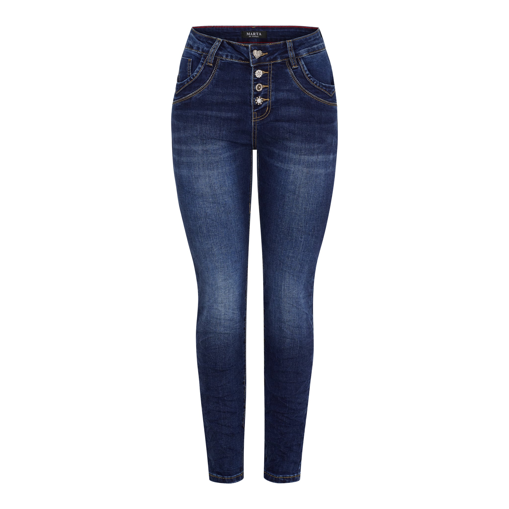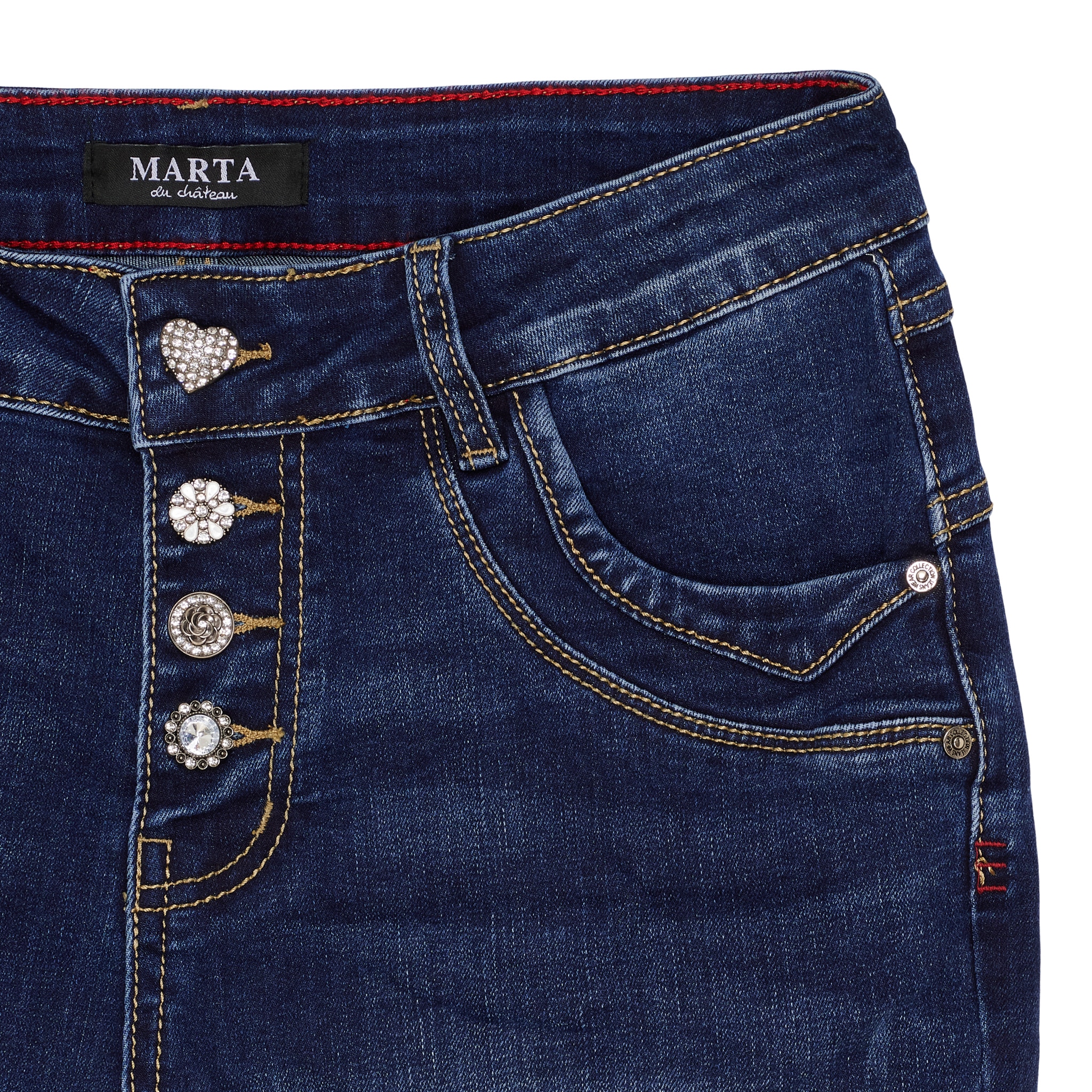 Superfine og gode jeans med blingknapper i gylfen, som