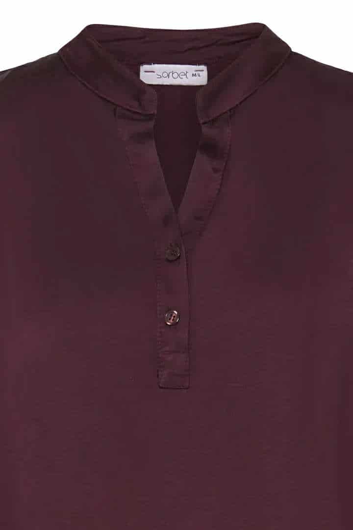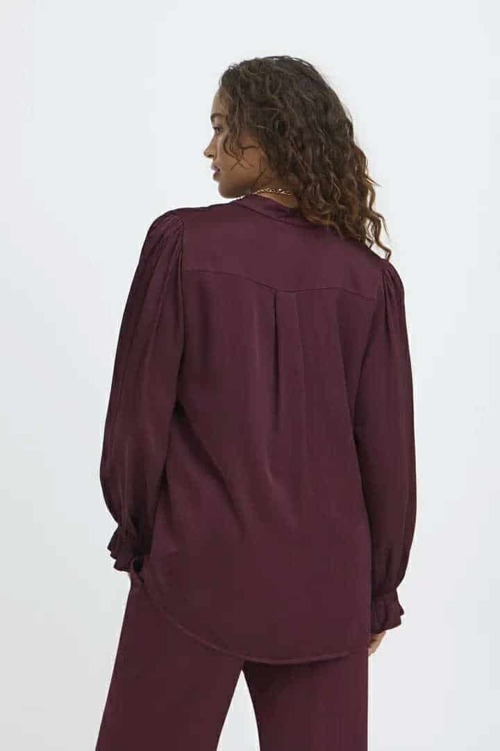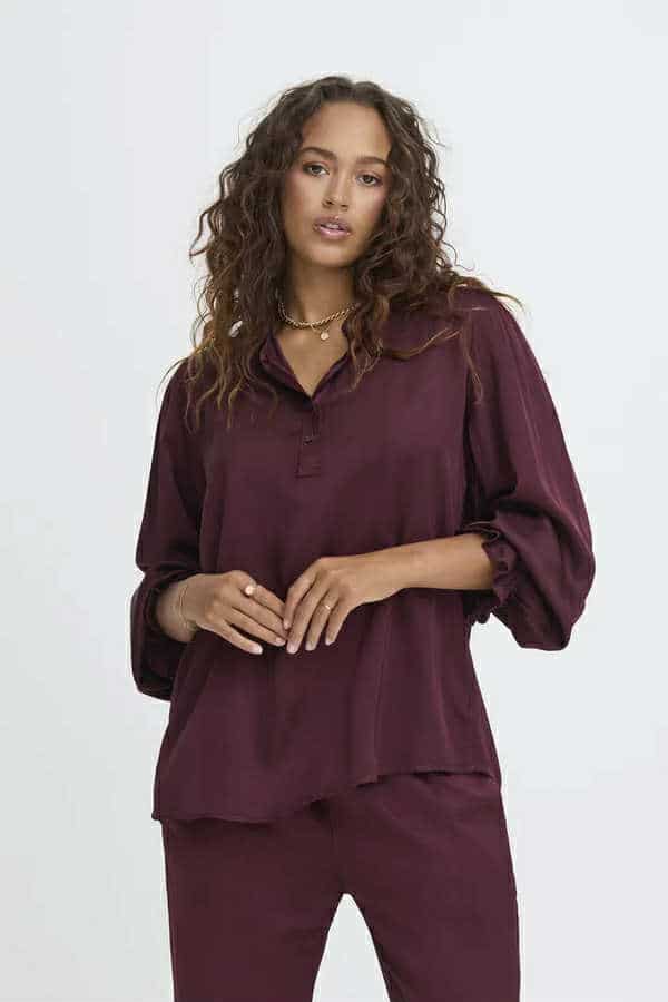 Elegant bluse i dyp burgunder farge- perfekt for både hverdag og finere anledninger.