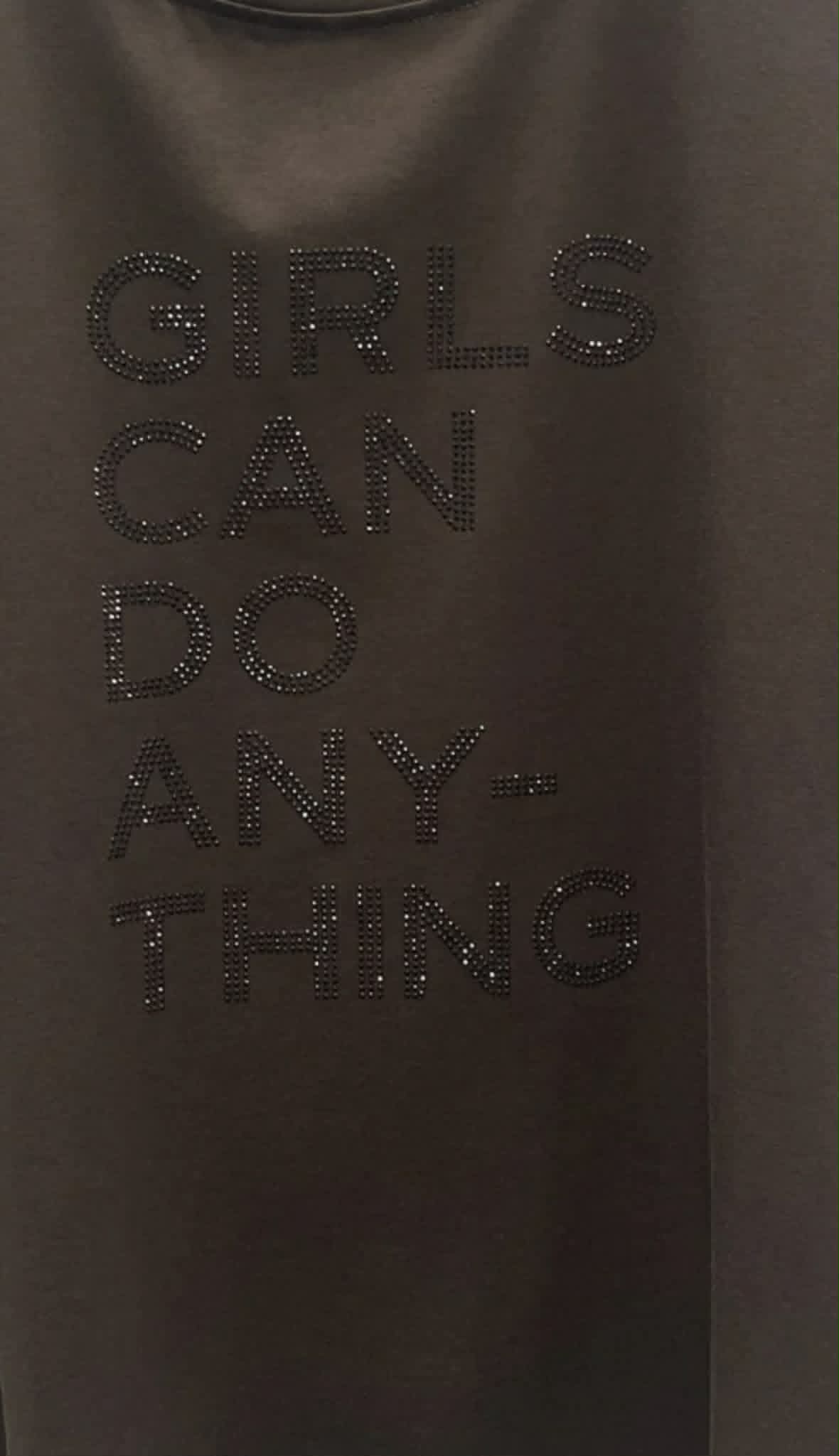 Tøff t- skjorte med glitterprint med «Girls can do anything» –